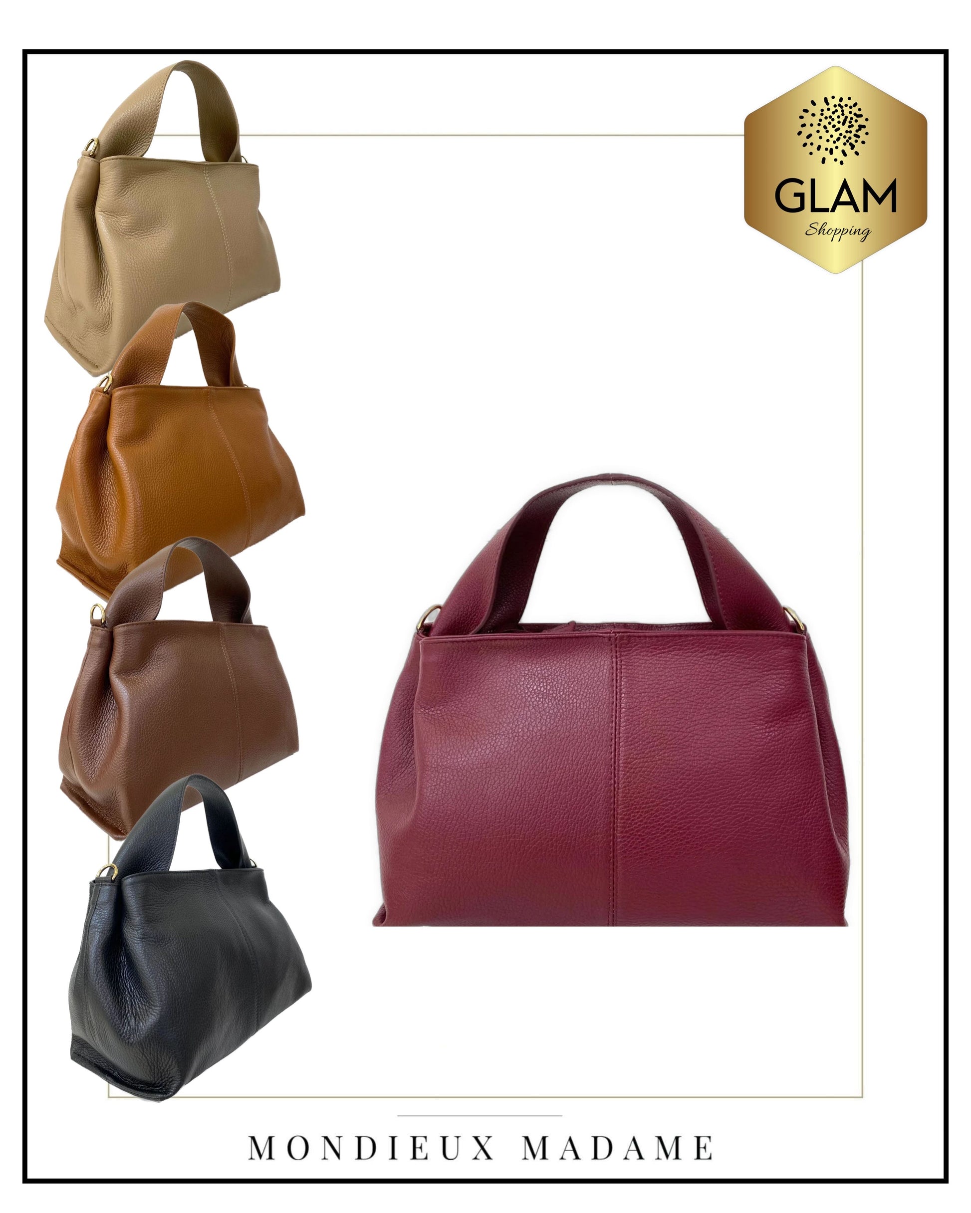 MONDIEUX MADAME, leren tassen, Belgisch merk, gemaakt in Italië